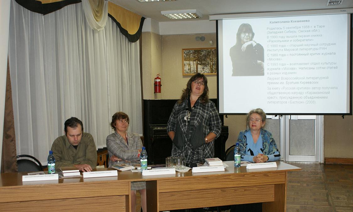 9 сентября в Гуманитарном центре – библиотеке имени семьи Полевых в рамках вампиловского фестиваля состоялась встреча городской общественности с литературными критиками и писателями Капиталиной Кокшенёвой, Лидией Сычёвой и Романом Сенчиным.
