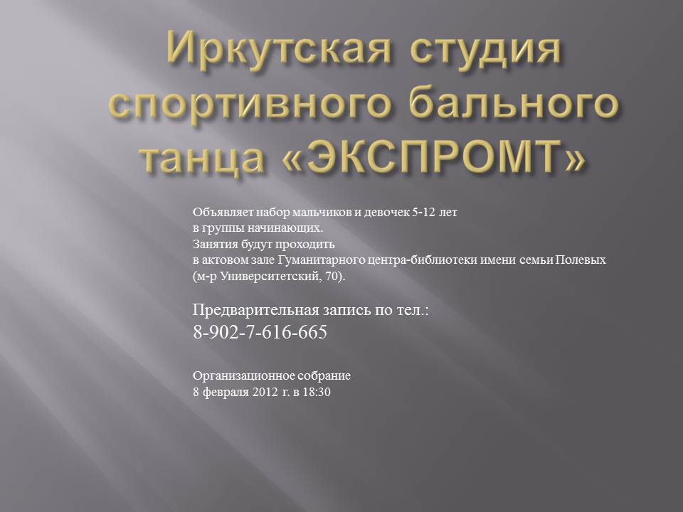 Организационное собрание 8 февраля 2012 г. в 18:30.