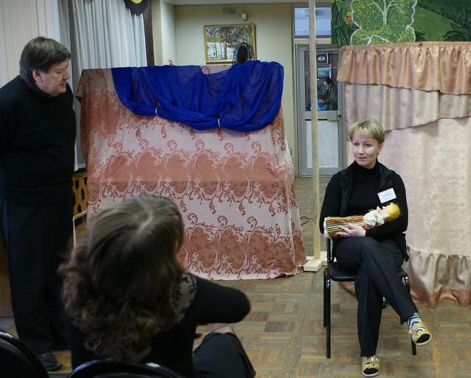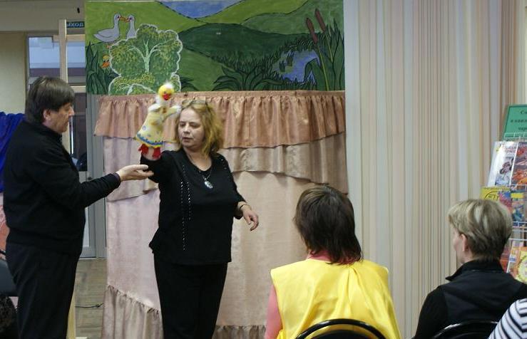 Главный специалист по любительским театрам Областного центра народного творчества и досуга Валерий Кирюнин провел мастер-класс и тренинги по вопросам выбора сюжета и поискам образного решения вождения кукол, актерскому мастерству и методике общения со зрителем через куклу. «Искусство театра кукол, изначально возникшего из народного творчества – добрый помощник вам в процессе привлечения детей и подростков к чтению», - сказал В.Кирюнин.