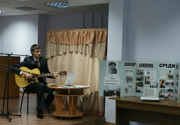 Литературный вечер, посвященный 75-летию со дня рождения А.В. Вампилова, пройдет в актовом зале Гуманитарного центра. На книжно-иллюстративной выставке будут представлены произведения писателя, литература о его творчестве, портреты Вампилова иркутских художников В. Безродных и А. Лукьянчикова. Вечер откроется романсомГригория Пономаренко на стихи Сергея Есенина «Не жалею, не зову, не плачу» в исполнении сотрудника ГЦ Кирилла Усольцева. Рассказ ведущей о жизни и творчестве драматурга будет сопровождаться видеопрезентацией. Актер и режиссер Юрий Базилев прочтет монолог Зилова из пьесы «Утиная охота». Сотрудники ГЦ Кирилл Усольцев, Леонид Зазерин и Елена Ковалева покажут инсценировку пьесы «Свидание». Мероприятие адресовано старшеклассникам и взрослым.
