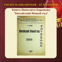 В фонде редких книг Гуманитарного центра хранятся несколько трудов И. Г. Баранова, в том числе специальное издание «Китайский Новый год». Накануне Китайского Нового года, который будет отмечаться 17 февраля 2026 года, предлагаем читателям познакомиться с этой интересной работой.