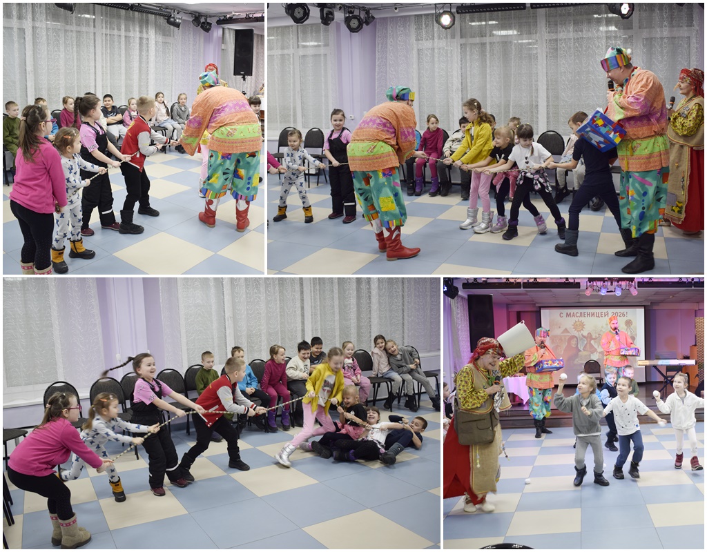Когда время пришло мешок с подарками да угощениями на сцену приволочь, то содержимое оказалось не отвечающим ожиданиям. Отнюдь не юная «кавказская пленница» там обнаружилась, но бодрая говорливая старушка, в которой старожилы подобных мероприятий без труда опознали Бабу Ягу. Потому её попытки выдать себя за настоящую Масленицу большинство наблюдателей восприняли с явным недоверием, включая детей. Но язык у бабушки, как и нос, оказались хорошо подвешены. Заговорила, заболтала, окрутила всех оборотами словесными и добилась права обменять присвоенный сундук с подарками в обмен на лицезрение испытания детей на ловкость, силу, меткость и проворность. Пришлось согласиться, очень уж аудиторию прежнее наполнение мешка интересовало. На метле летали зигзагами, канат тянули усиленно, снежками в меткости соревновались, по кругу за платочком носились. Всё для того, чтобы Ягу позабавить, а взамен блинов желанных и конфет с баранками получить бубен с маракасами и под эту какофонию позволить жуликоватой старушке исчезнуть со сцены…