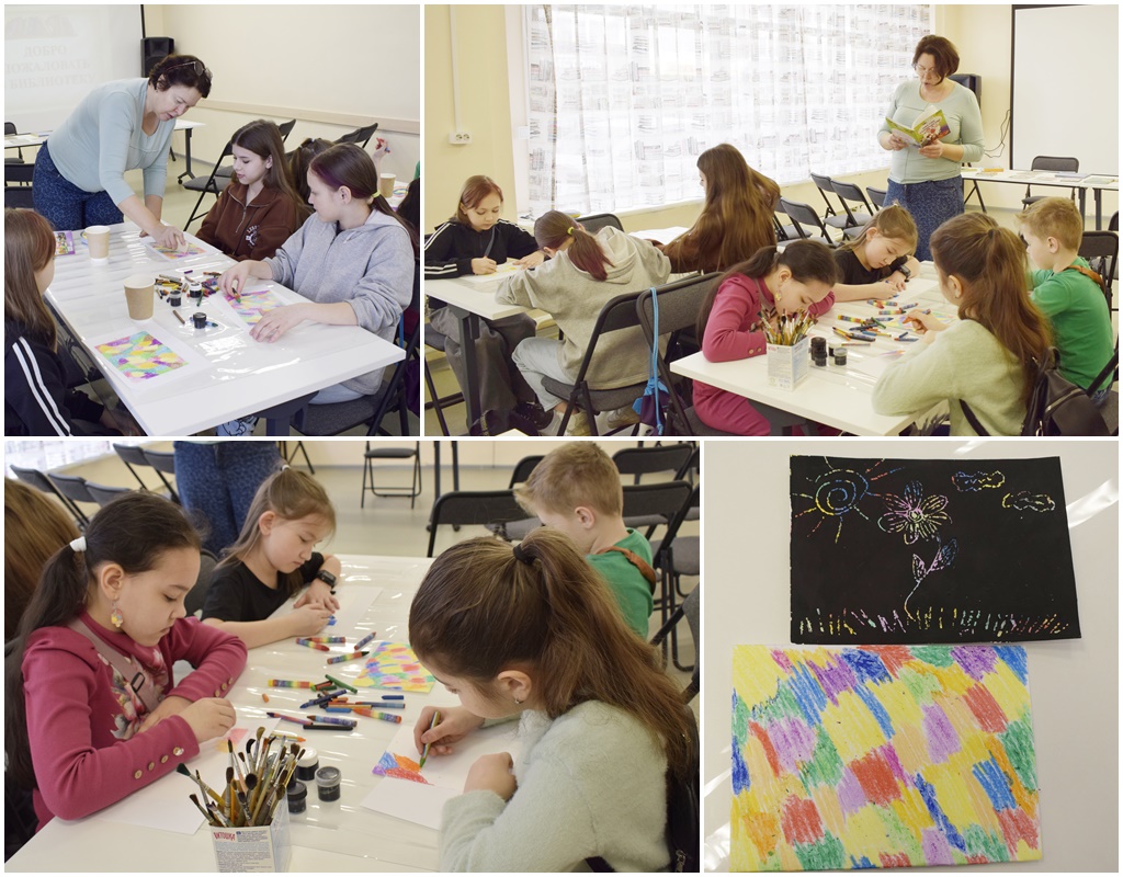Воспитанники муниципального бюджетного учреждения дополнительного образования города Иркутска «Центр детского технического творчества» и в дни школьных каникул времени не теряют, стараются не останавливаться, дальше двигаться в креативном направлении. Сегодня в Гуманитарном центре им предложили на мастер-классе «Цветик-семицветик» освоить технику граттаж. Пока юные художники затушевывали лист разноцветными восковыми мелками и покрывали слоем чёрной гуаши, ведущая Ольга Вишнякова вслух читала ребятам одноимённую сказку В. Катаева о волшебном цветке. Видимо, под впечатлением от сюжета дети изобразили то, о чём мечтают. Конечно, в композиции цветы присутствовали, даже самые фантастические виды, но были они рядом с домом, который каждый изобразил в соответствии со своими пожеланиями. У кого-то – в виде островерхого высокого теремка, у кого-то – в виде симпатичной избушки. Не даром говорят: если человек рисует дом, окружённый цветами и деревьями, значит – лето не за горами!