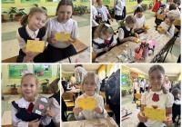 Только напрасно юные гимназисты думали, что на этом их творческие «мучения» закончились. Плохо они знают нашего брата сестру-библиотекаря. Уже за следующим столом их поджидали новые творческие задания, привлекали своей необычностью, заманивали быстротой и лёгкостью исполнения, обещали удовольствия эстетические и рост духовный. Предстояло почувствовать себя архитектором, и в сроки невиданные склеить домик своей мечты из доступного материала. И чтобы в нём всегда тепло и светло было – фонарик рукодельный до комплекта присовокупить. Уже потом, после сдачи объекта «под ключ», можно себя обрадовать открыткой поздравительной, да хоть тремя сразу, ради такого случая не жалко. Это вы сегодня очень удачно зашли! Надеемся, желания школу посещать у многих прибавится. На это и было рассчитано.