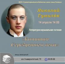 Приглашаем на литературно-музыкальную гостиную, посвящённую жизни и творчеству Николая Гумилёва к его 140-летию со дня рождения. Для вас рассказ о жизни поэта, его экспедициях и влиянии на русскую литературу. Прозвучат стихи и песни на его тексты, наполненные романтикой и силой духа.