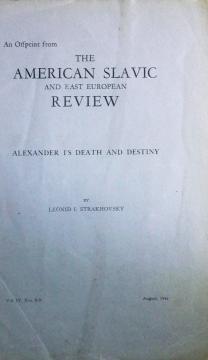 Strakhovsky, L.I. Alexander I`s death and destiny / L.I. Strakhovsky // The American Slavic and east European Review : историческая литература. - 1945. - Vol. IV, No. 8-9. - 33-50 с. – (обл.)