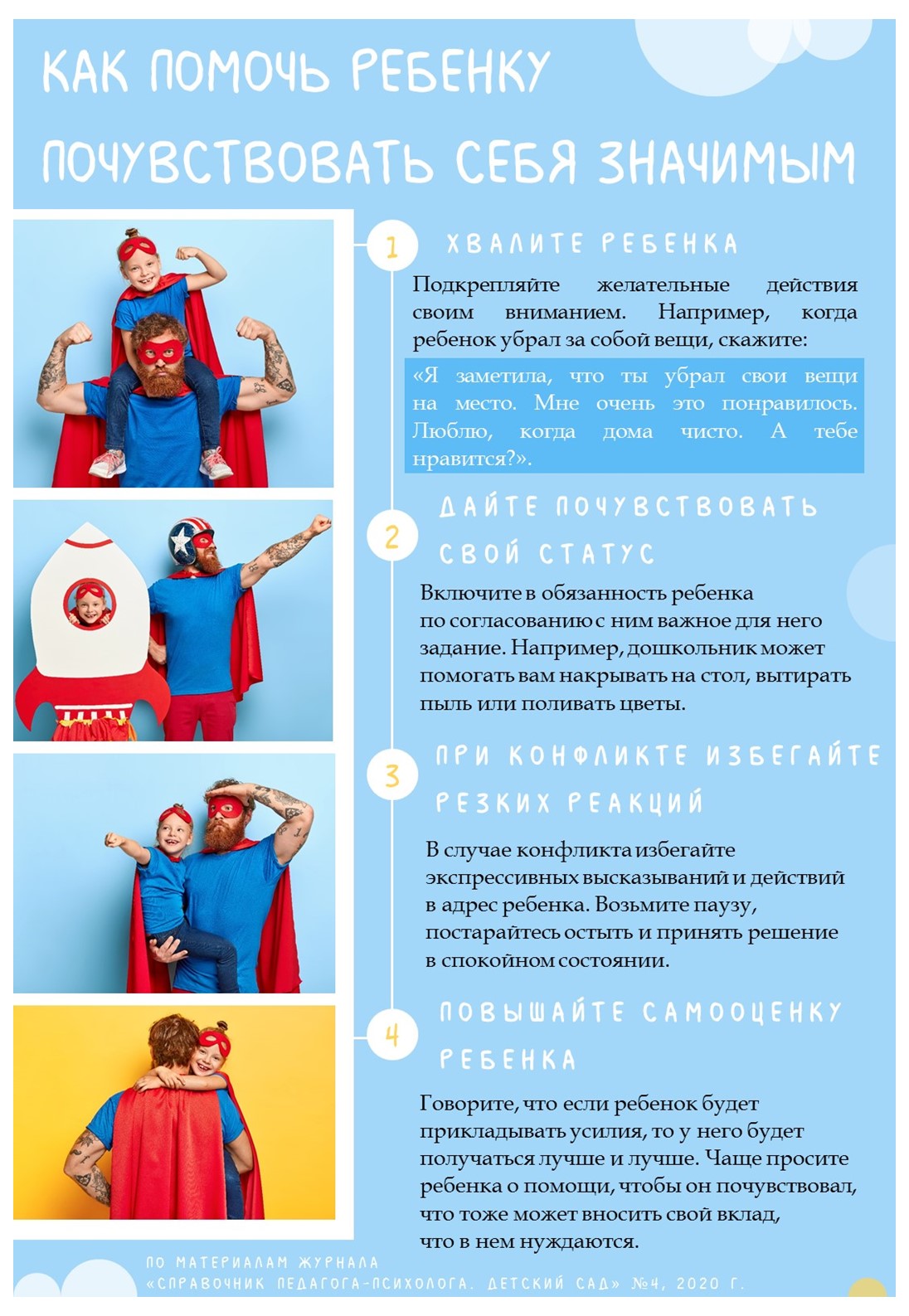 На основе материалов журнала «Справочник педагога-психолога. Детский сад» №4 за 2020 год мы оформили информационный плакат с советами для родителей.